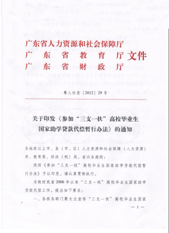 关于印发《参加“三支一扶”高校毕业生国家助学贷款代偿暂行办法》的通知