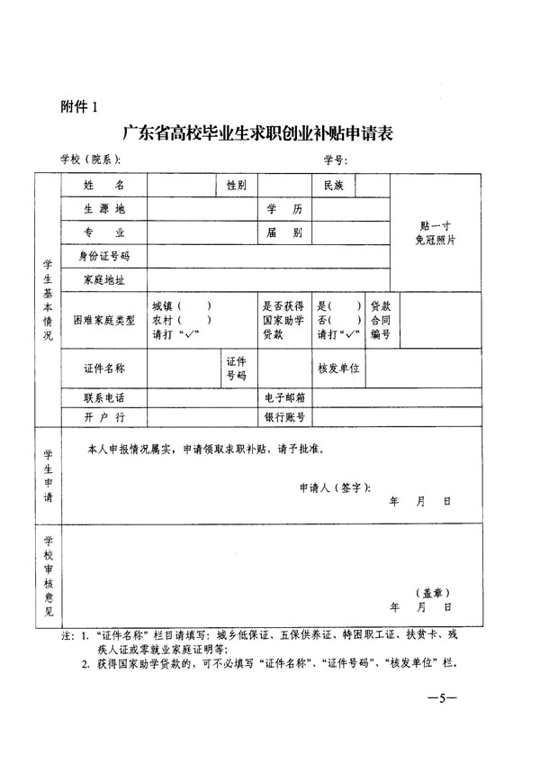 文件附件:点击下载附件:附件1:广东省高校毕业生求职创业补贴申请表.docx