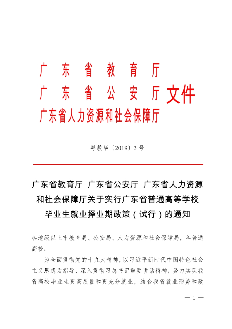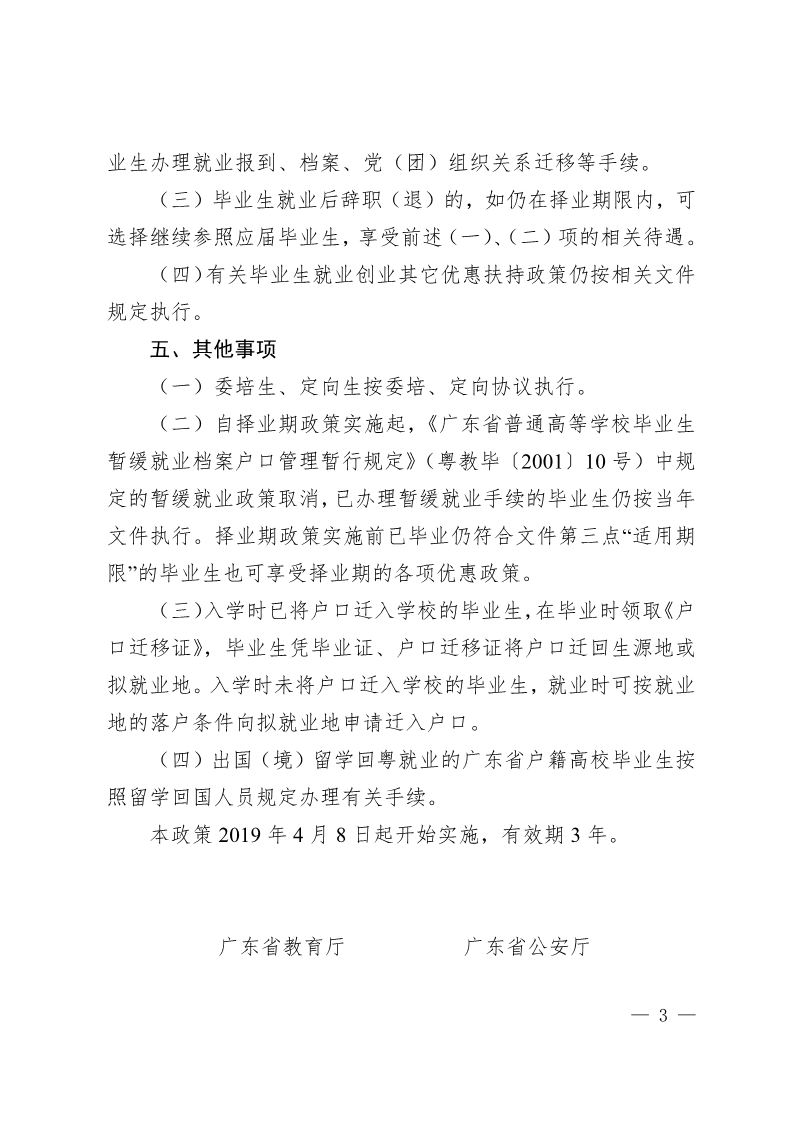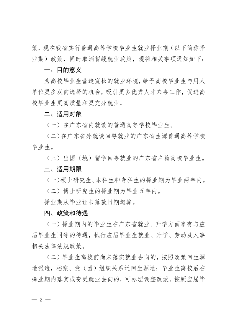 关于实行广东省普通高等学校 毕业生就业择业期政策(试行)的通知