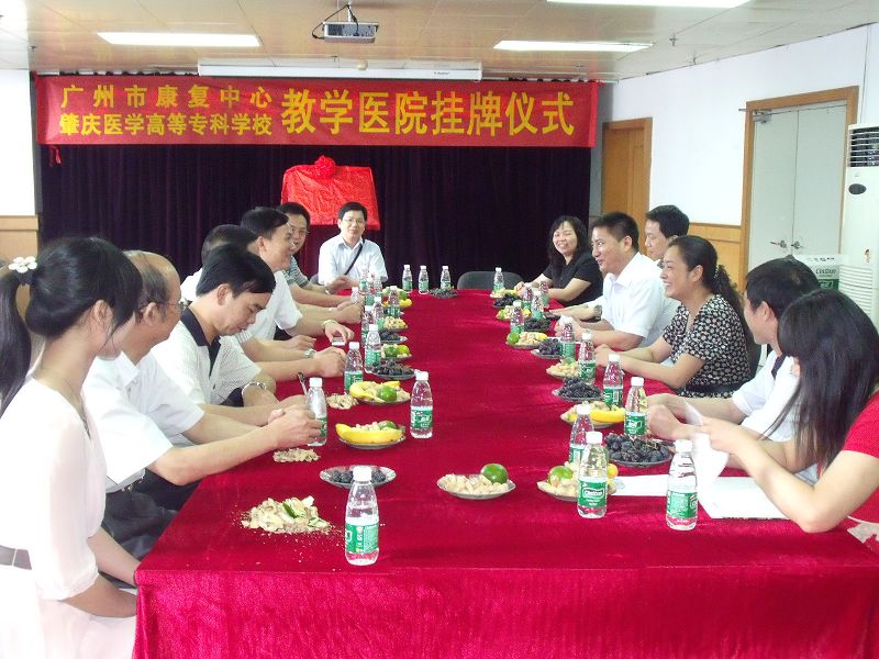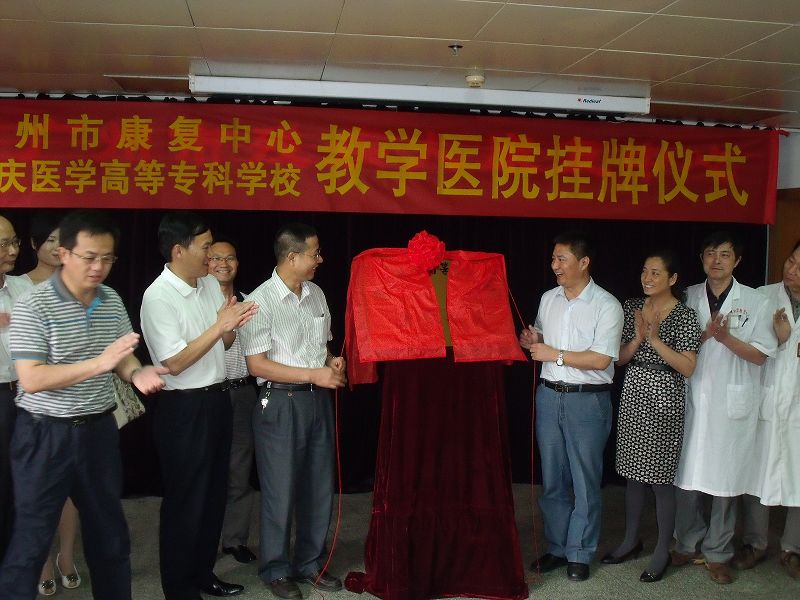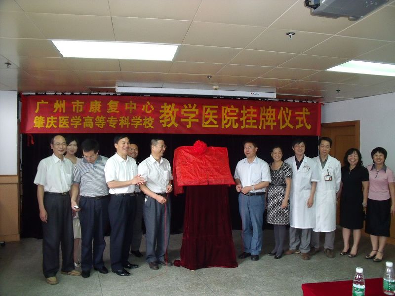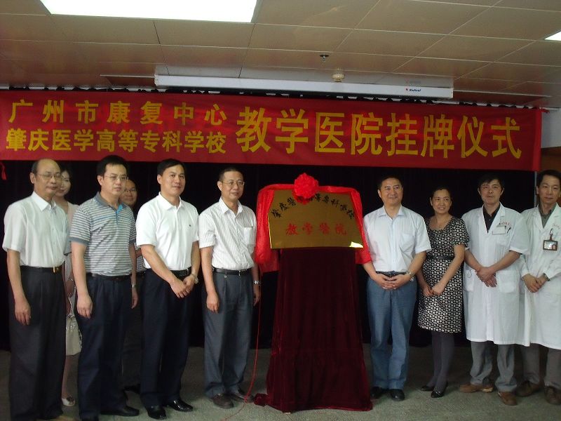2010年5月18日上午,我校张少华、张明副校长带领教务处、学生处、实习与就业指导办、中医教研室等部门的负责人和教师一行九人到广州市康复中心(广州市博爱医院),参加在该中心举行的肇庆医学高等专科学校教学医院牌匾揭幕仪式。在揭幕仪式上,张少华副校长和康复中心张嘉默主任分别发表了热情洋溢的讲话,在讲话中,他们都对彼此过去的合作所取得的成绩给予了肯定,并对今后进一步加强合作进行了展望。接着,张明副校长和张嘉默主任代表双方为教学医院牌扁揭幕。最后,我们一行在中心领导的伴同下参观了中心的医疗、康复、教学场所。广州市康复中心作为我省康复技术最强、设备设施最先进和完善的康复中心之一,给我们留下深刻的印象。