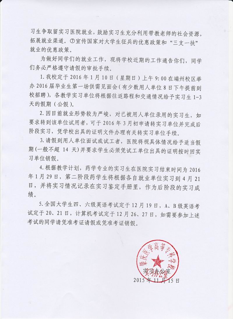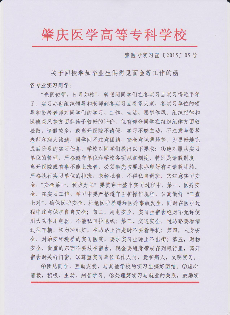 关于实习生回校参加2016届毕业生供需见面会等工作的函