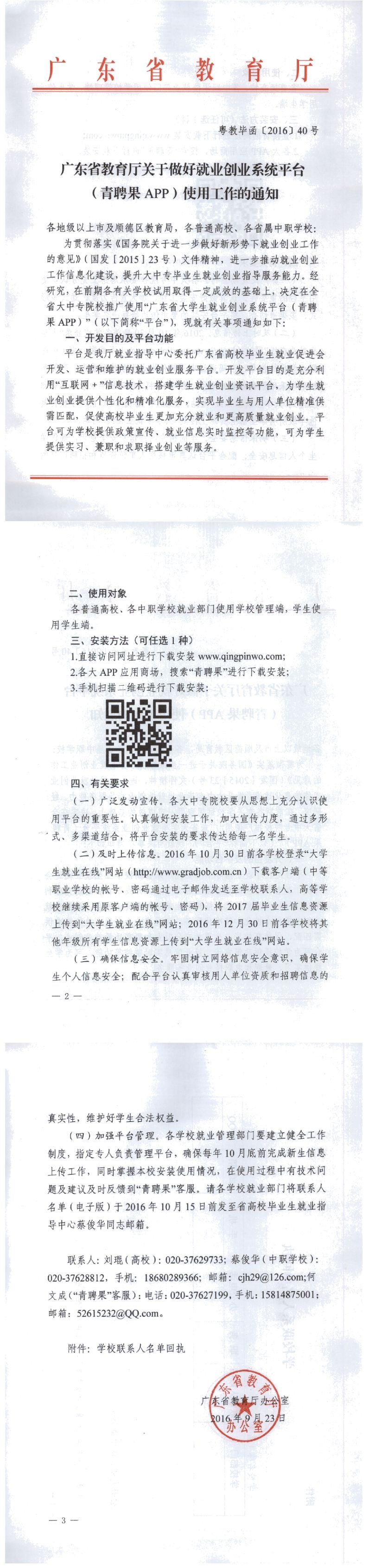 广东省教育厅关于做好就业创业系统平台(青聘果APP)使用工作的通知