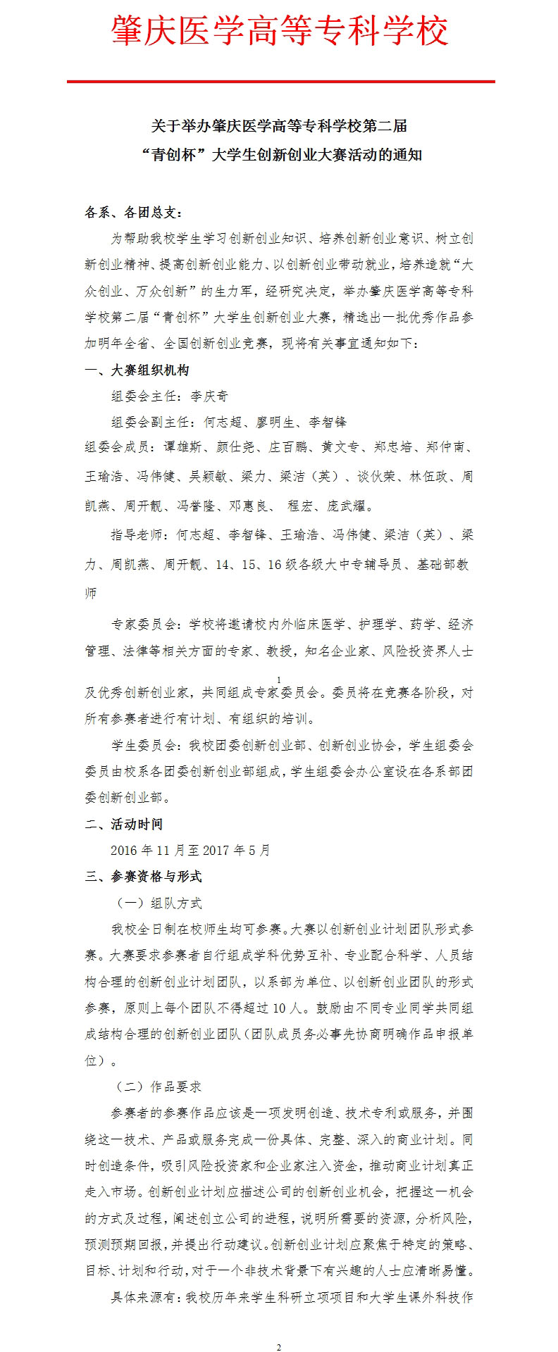 关于举办肇庆医学高等专科学校第二届“青创杯”大学生创新创业大赛活动的通知