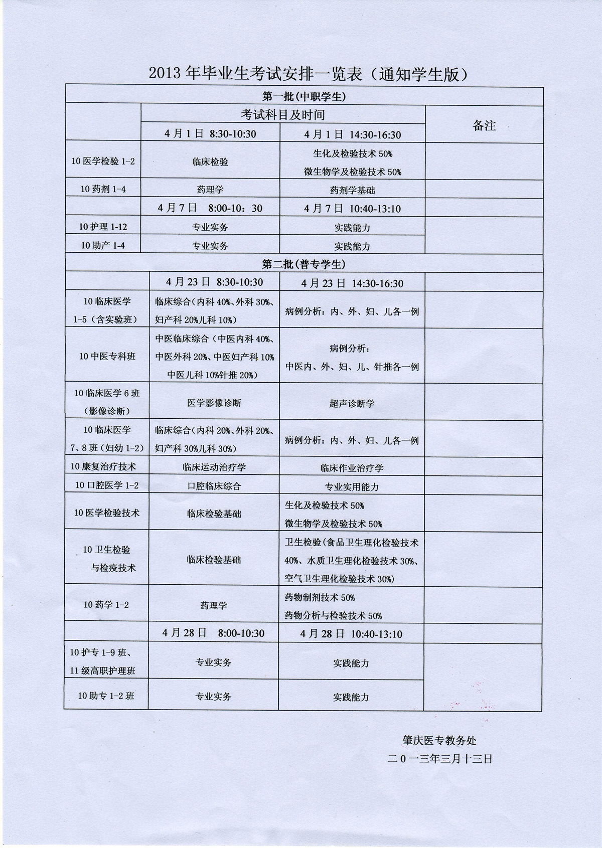 1.中职各专业实习生:3月29日(星期五)结束实习并办理相关离院手续,30日(星期六)回学校端州校区,准备参加毕业考试和毕业教育。护理、助产专业执业考试考前辅导安排在3月31日至4月7日。