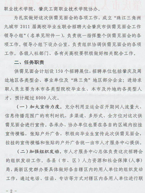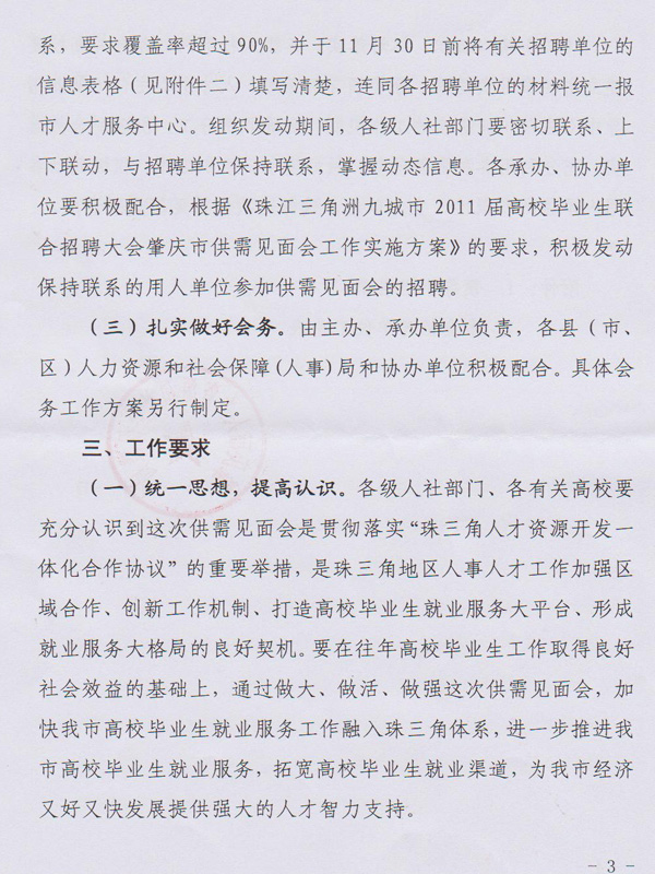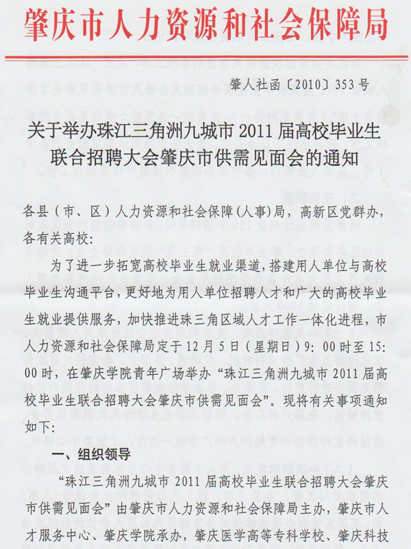 珠三角九城市2011届毕业生招聘大会肇庆供需见面会的通知