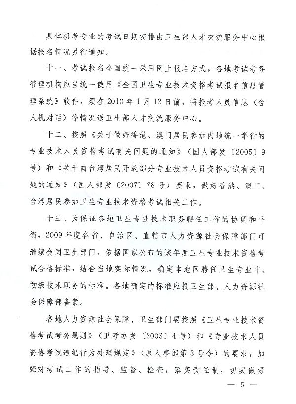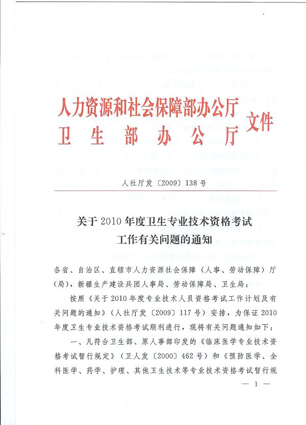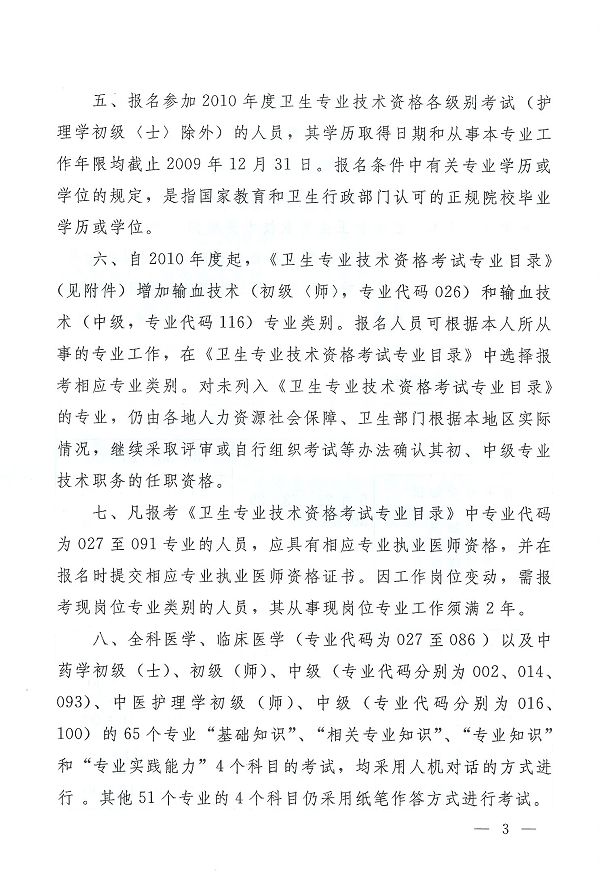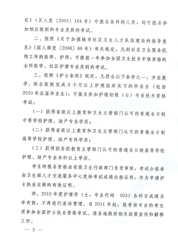 关于2010年度卫生专业技术资格考试工作有关问题的通知
