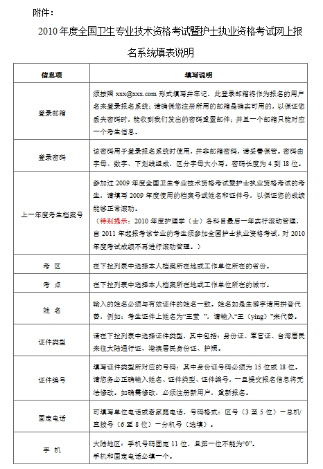 关于2010年度卫生专业技术资格考试工作有关问题的通知